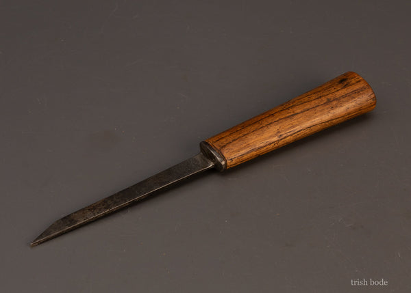 Clean, fine, no issues. 3 7/8 inches long. Wide body 1 1/4 inch iron with matching numbers. NORRIS was established in 1860 and made the world's finest planes until the 1950s. Considered the Rolls Royce of hand planes, a phrase coined in a Fine Woodworking Magazine article in the 1980s. In its day a Norris plane cost 4 times that of a comparable Stanley. The Norris has a much thicker iron and cap iron. It is a heavier plane. Also, the iron sits on wood as opposed to metal. All of these things prevent chatter and create a smoother cut. In 1913 Norris patented his famous adjuster which provides micrometer-like, smooth blade adjustment. In 1922 he patented an improvement to this adjuster. This adjuster allowed Norris to outdistance his product from his competitors. It is still copied today. Dating your Norris Pre- WW II vs Post WW II Pre-war planes are better made with better materials. Brazilian rosewood infill. Dovetailed steel construction. Slightly thicker irons 3/16" with larger Norris logos. 13/16" wide to 5/8". Earlier planes Planes circa 1928 and earlier are found with finial lever cap screws and most often WARD irons. The 1928 Norris catalog shows both finial and flat top cap screws along with Ward and Norris irons. The two aforementioned adjuster patents will also aid accurate dating.